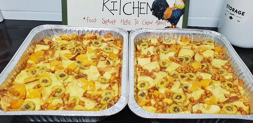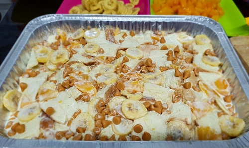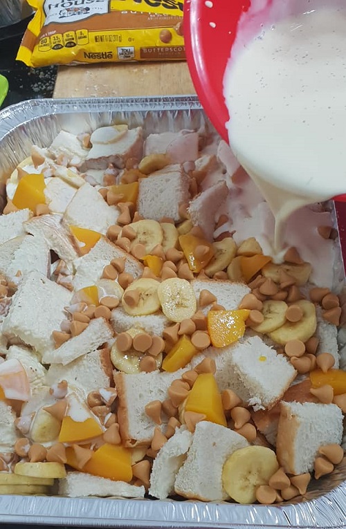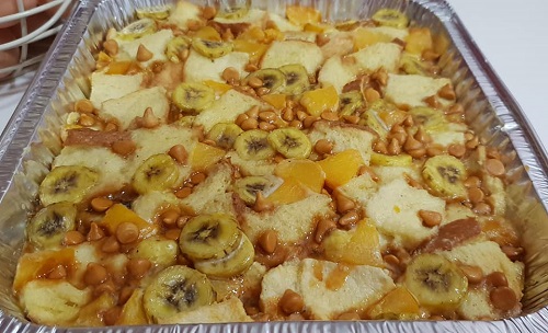 Banana Peaches Butterscotch Bread Pudding