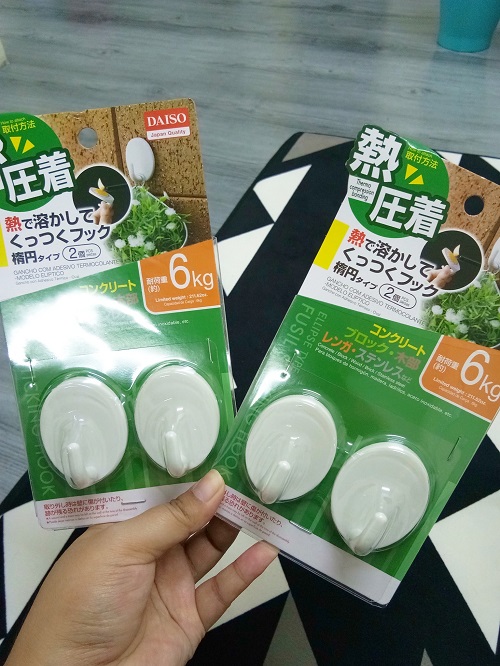 Dapur i dinding mozek nak tebuk sayang kan so im using wall hook for my spice organizer in shaa allah lekat kuat sebab wall hook dari daiso ni jenis hot melt adhesive, cara nak guna i akan share kat bawah ni.