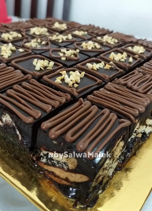 3. Tuang ke dalam adunan kek batik yang telah disejukkan. Biarkan dalam chiller minimum 4jam. Seeloknya semalaman.