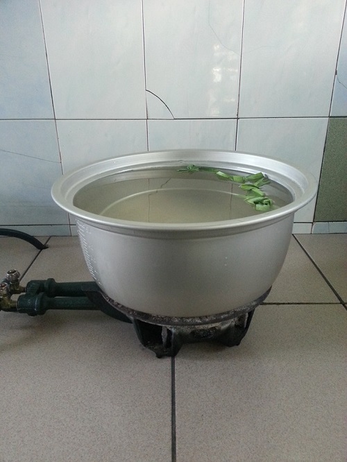 Bismillah. Kita mulakan dengan periuk nasi itu sendiri. Untuk mendapatkan nasi yang tahan lama atau tidak cepat basi, isikan air di dalam periuk sehingga penuh. Kemudian masak di atas dapur gas sehingga air mendidih. Inilah petua untuk nasi yang tahan lama. Saya suka masukkan beberapa helai daun pandan ketika proses ini. Dapur akan wangi semerbak. Proses masak air sehingga mendidih di dalam periuk nasi ini tidak perlu anda lakukan setiap kali hendak masak nasi. Memadai melakukankannya sekali dalam sebulan. Atau ketika anda ada majlis atau kenduri sahaja.
